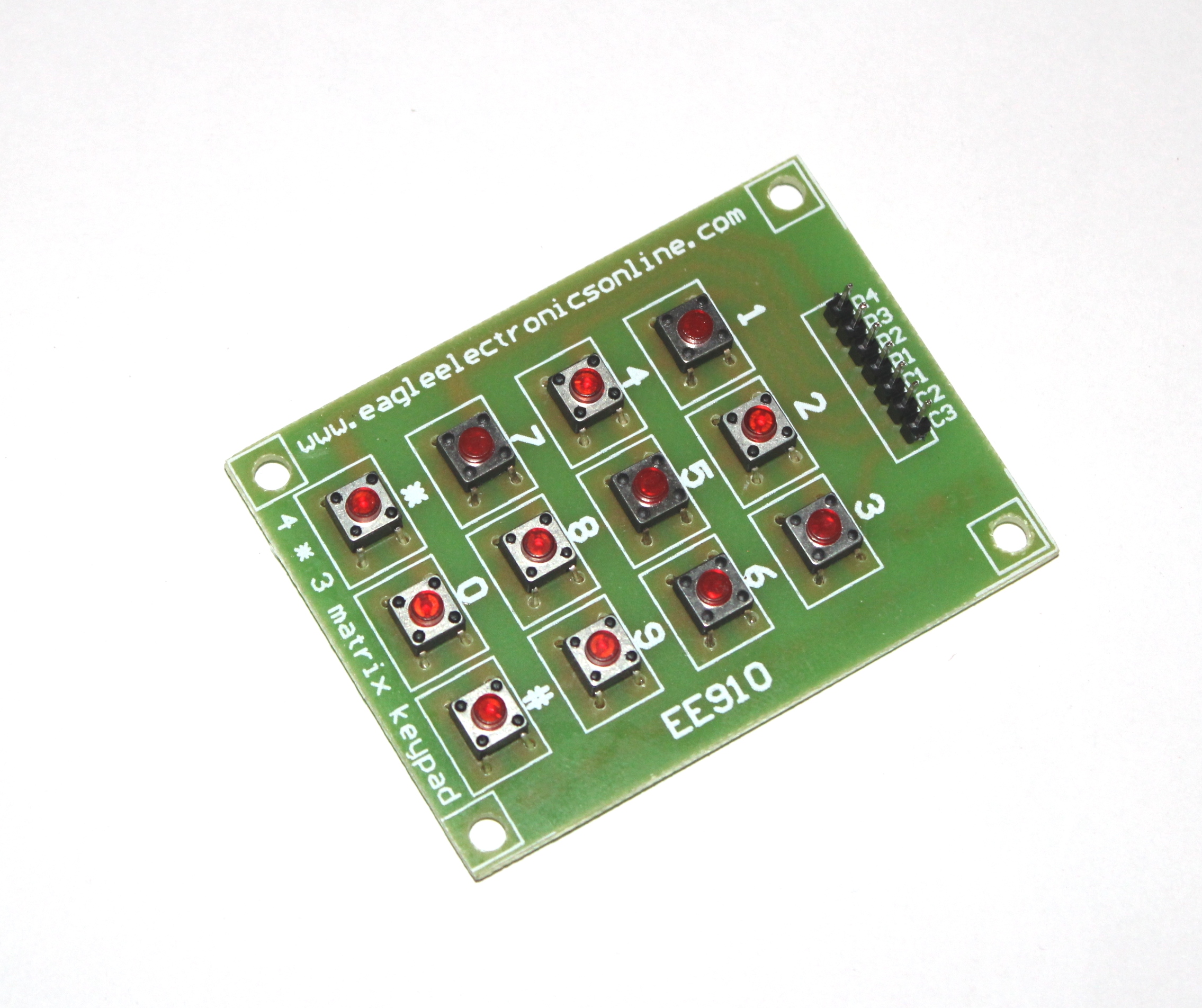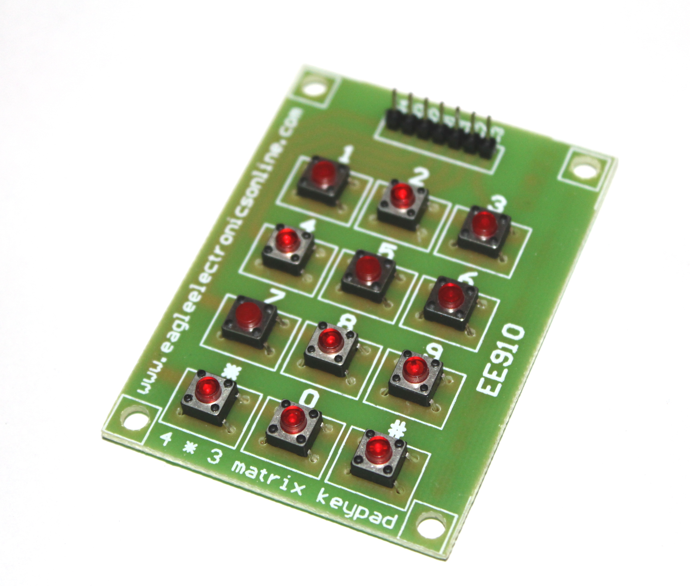 This 12-button keypad provides a useful human interface component for microcontroller projects. Convenient adhesive backing provides a simple way to mount the keypad in a variety of applications. The Keypad 4×3 features a total of 12 buttons in Matrix form. A female 7-pin berg connector is provided for interfacing it with your microcontroller circuits.