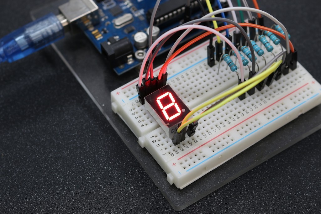 In the common anode display, all the anode connections of the LED segments are joined together to logic “1”. The individual segments are illuminated by applying a ground, logic “0” or “LOW” signal via a suitable current limiting resistor to the Cathode of the particular segment (a-g).