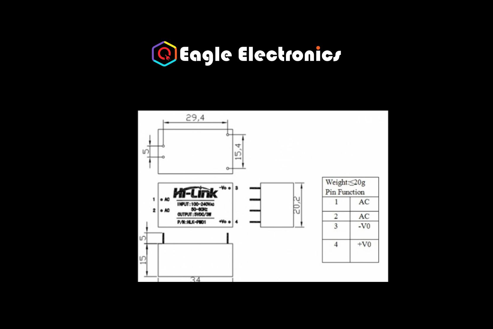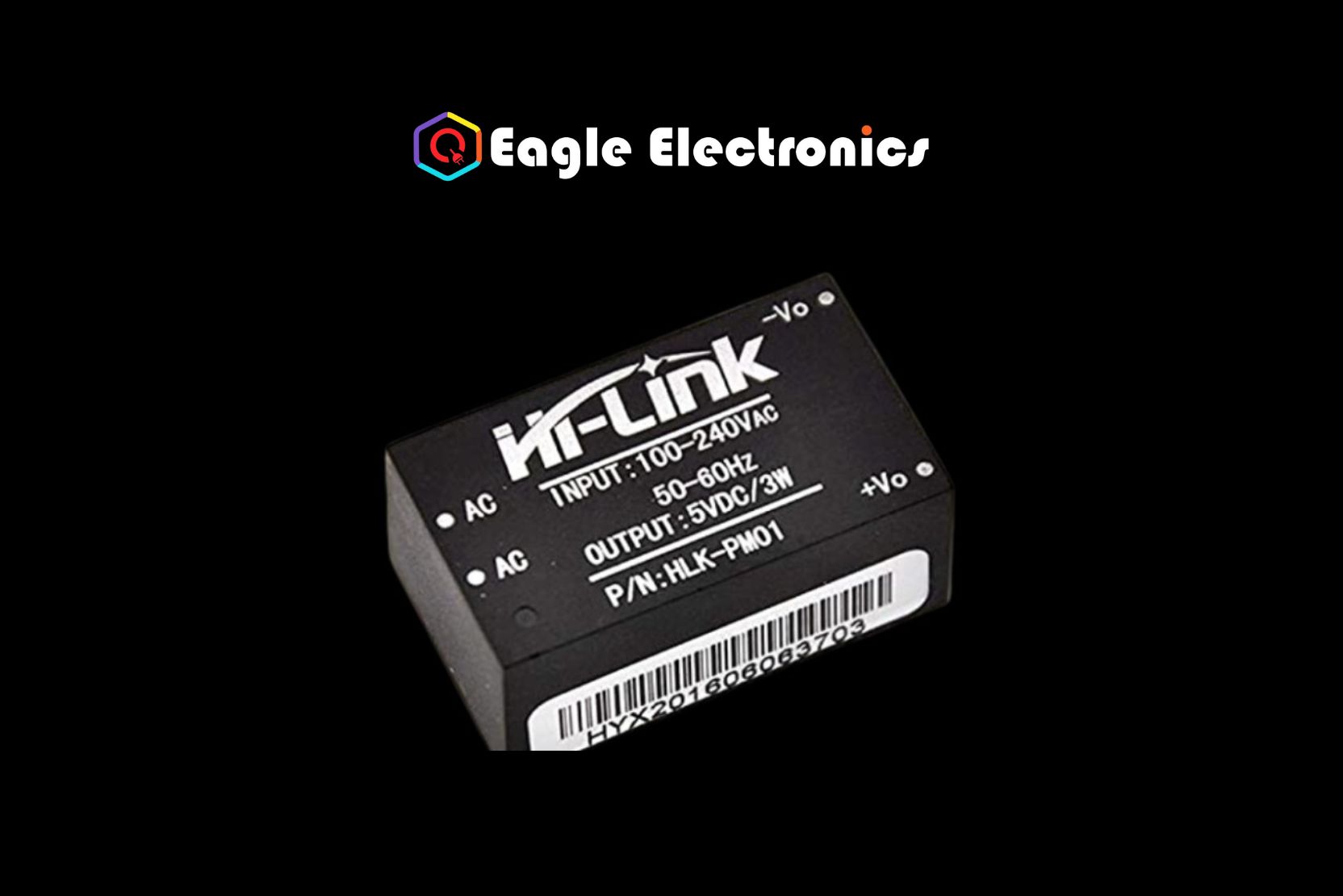 HLK-PM01, a Hi-Link AC-DC Power Module The 230V to 5V/3W SMPS Module (Hi-Link) is an isolated switching step-down power supply module that is PCB-mounted in plastic. It has a 3-watt power rating and can deliver 5-volt DC from 120-volt AC to 230-volt AC. This makes it ideal for small applications that require a 5V mains supply.