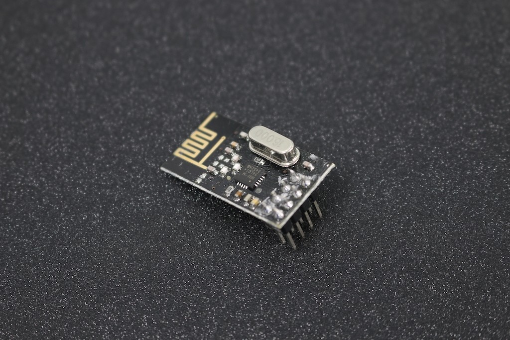 The nRF24L01 is a single chip 2.4GHz transceiver with an embedded baseband protocol engine (Enhanced ShockBurstTM), designed for ultra low power wireless applications. The nRF24L01 is designed for operation in the world wide ISM frequency band at 2.400 – 2.4835GHz. An MCU (microcontroller) and very few external passive components are needed to design a radio system with the nRF24L01.