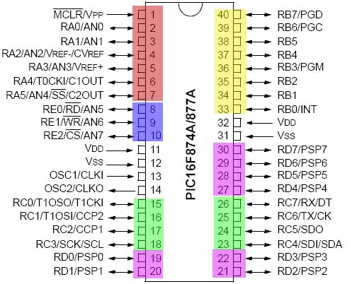The PIC16F877A features 256 bytes of EEPROM data memory, self programming, an ICD, 2 Comparators, 8 channels of 10-bit Analog-to-Digital (A/D) converter, 2 capture/compare/PWM functions, the synchronous serial port can be configured as either 3-wire Serial Peripheral Interface (SPI™) or the 2-wire Inter-Integrated Circuit (I²C™) bus and a Universal Asynchronous Receiver Transmitter (USART). All of these features make it ideal for more advanced level A/D applications in automotive, industrial, appliances and consumer applications.