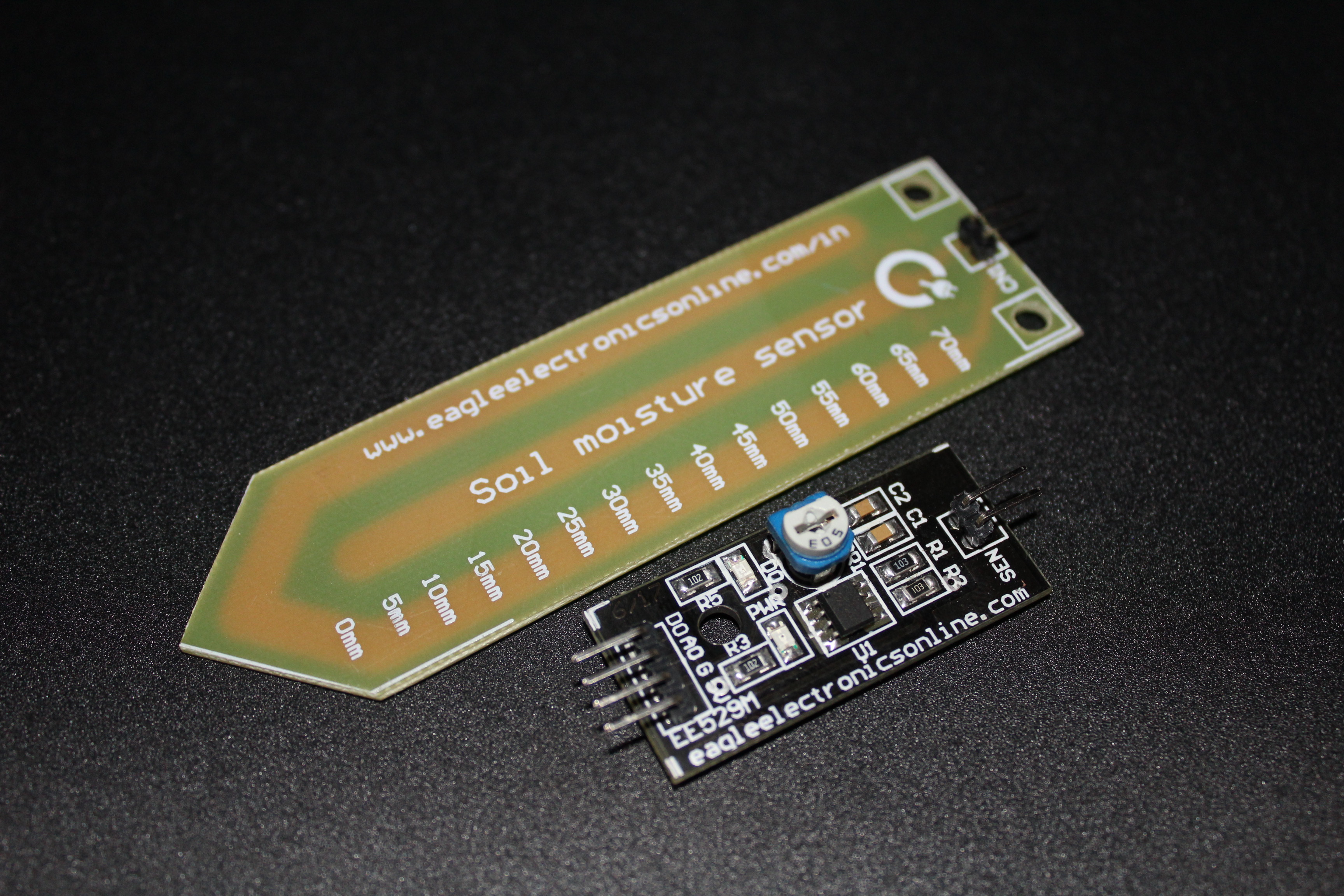 This soil moisture sensor can be used to detect moisture, when the soil is dry, the module outputs a high level, whereas output low. Using this sensor make an automatic watering system, so that your garden plants without people to manage.