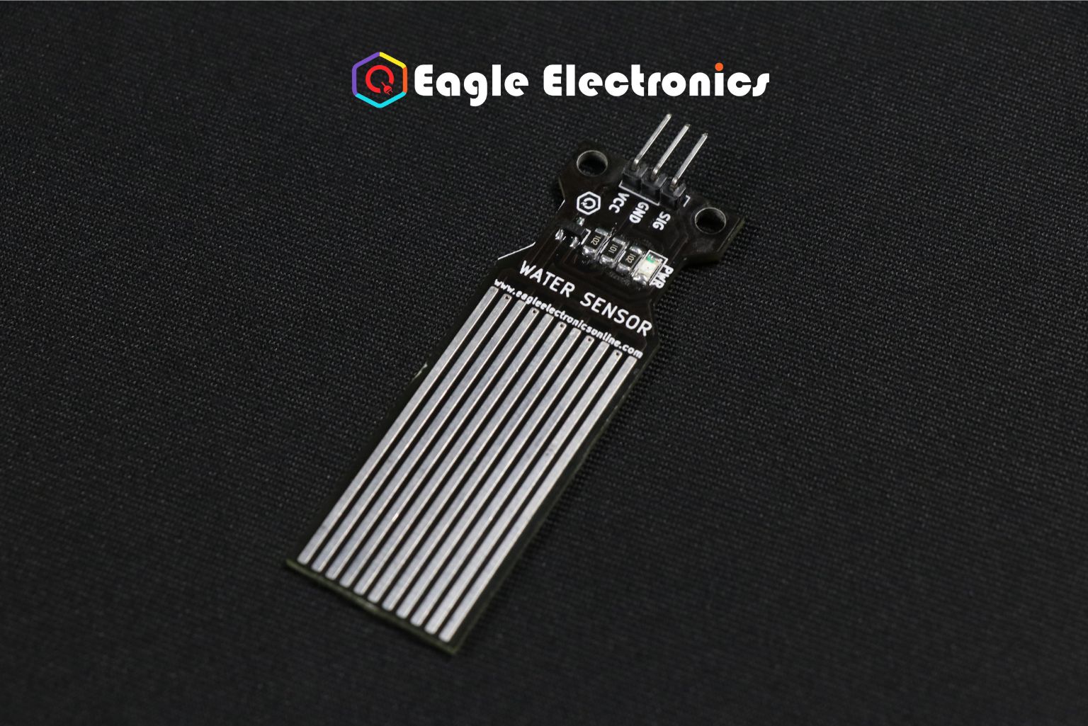 The ground and sensor signal traces of this sensor are interlaced. By measuring conductivity, it determines whether the sensor is dry, damp, or fully submerged in water. In addition, it finds water by utilizing its exposed PCB traces.